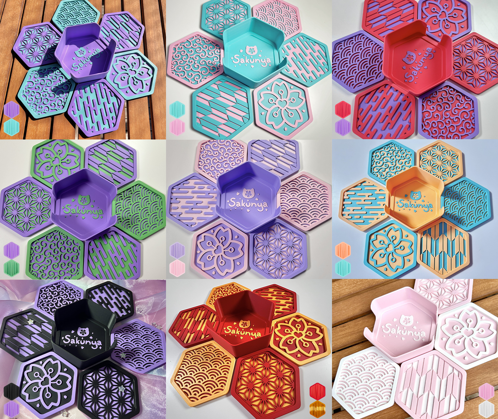 6er Untersetzer Set mit japanischen Mustern