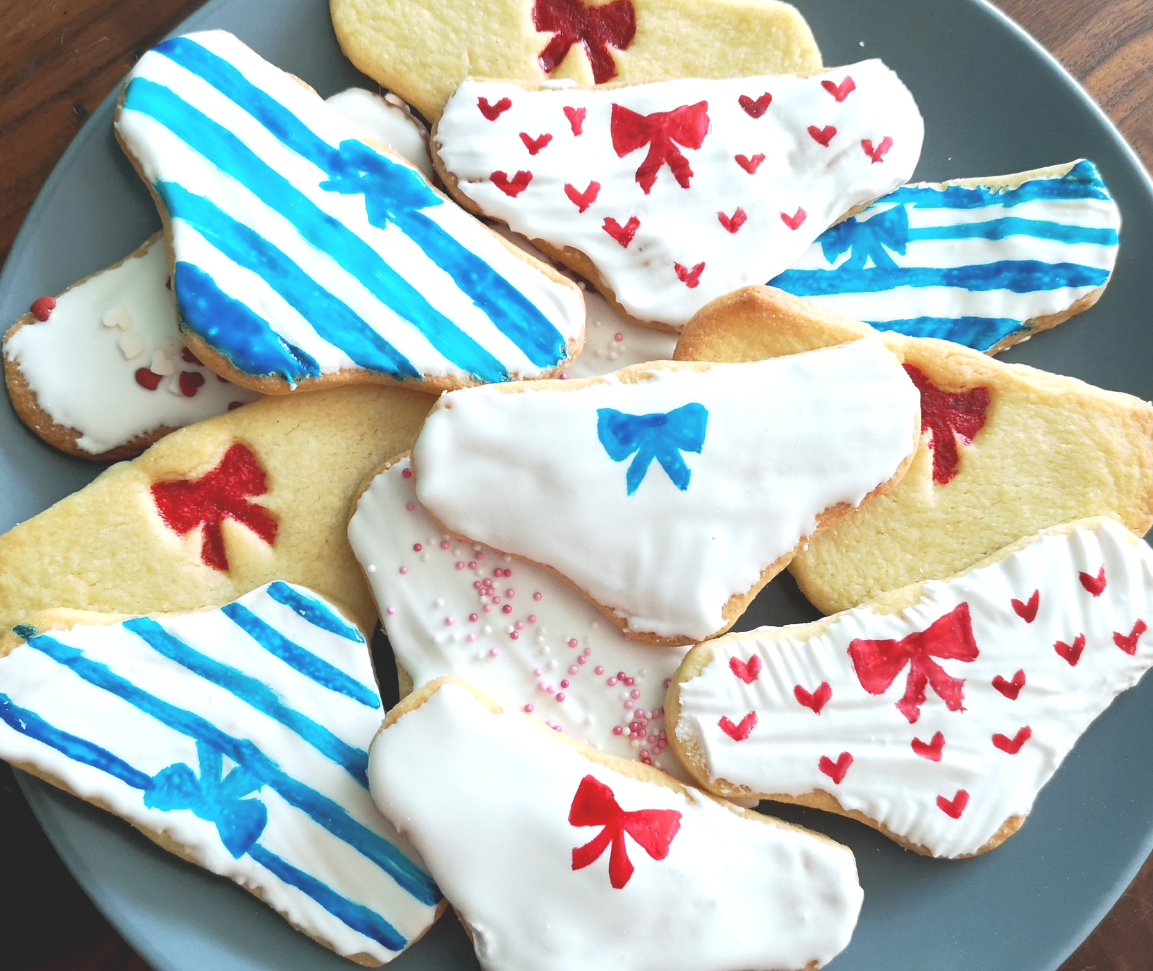 Ein Keksausstecher in typischer Anime Höschen Form mit süßer Schleife.